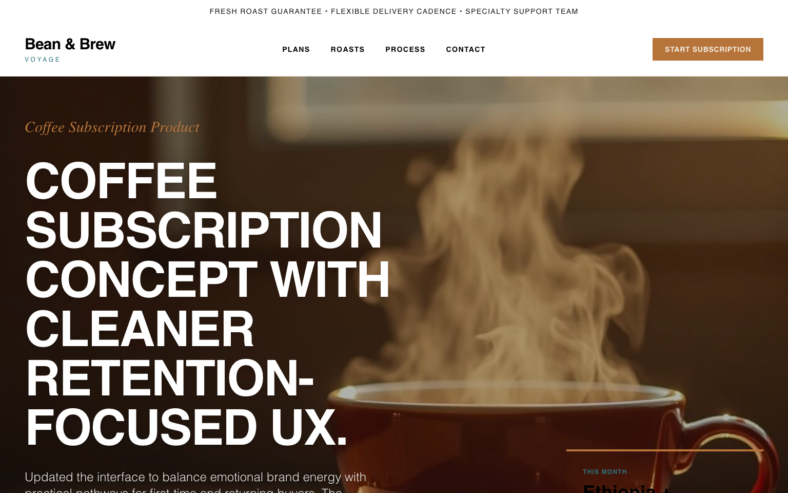 Coffee subscription landing experience redesigned for stronger first-time buyer clarity and retention-focused UX.