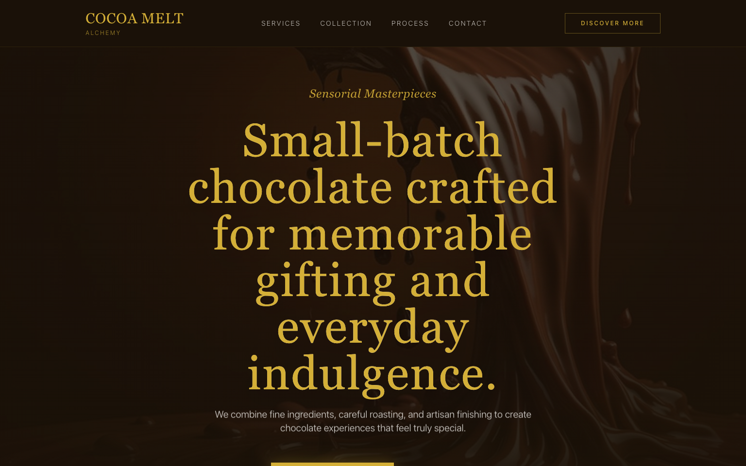 Chocolate-focused concept with refined hero readability, upgraded copywriting, and cleaner UX structure.