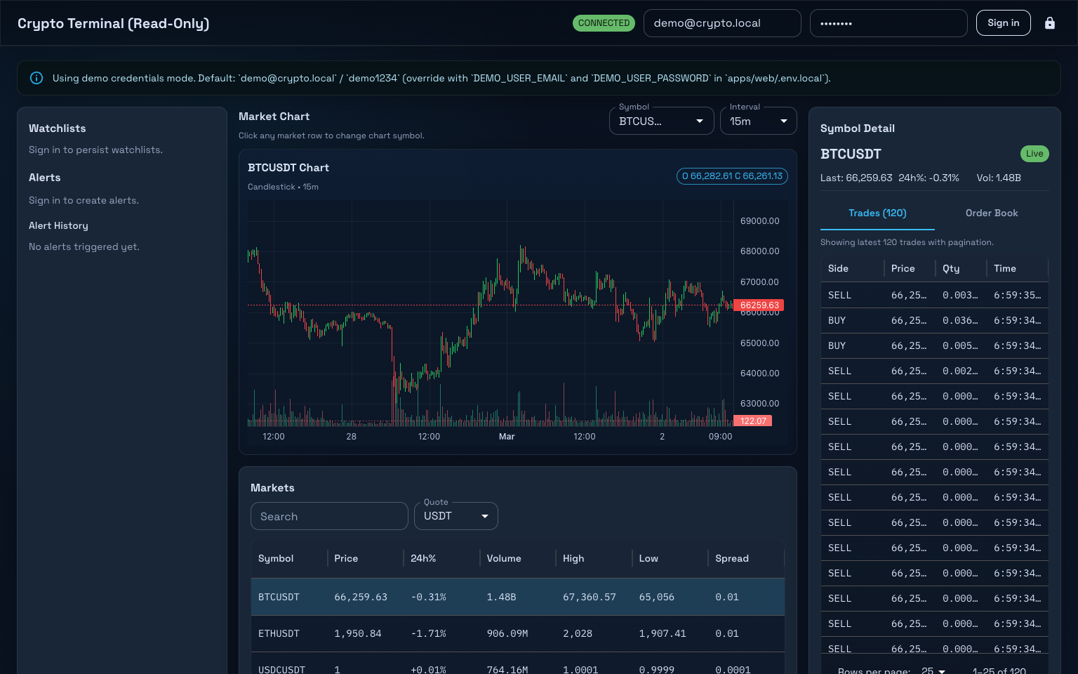 Crypto market dashboard focused on fast readability, clean hierarchy, and live-tracking workflow.