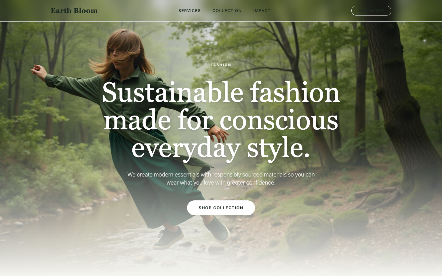 Sustainable fashion concept with rewritten narrative, clearer service framing, and stronger visual consistency.