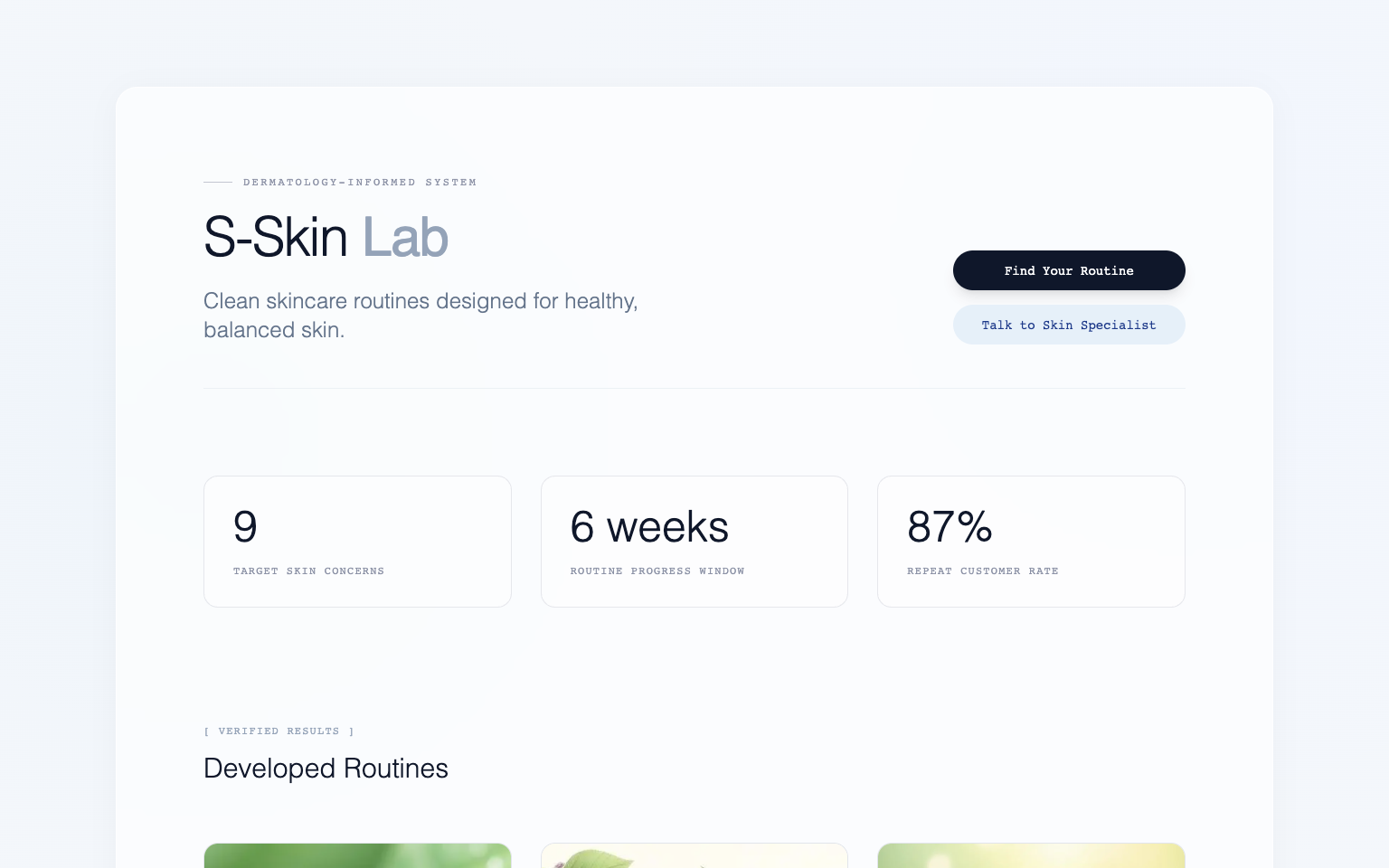 Skincare brand concept redesigned with improved readability, thematic copywriting, and stronger UI identity.