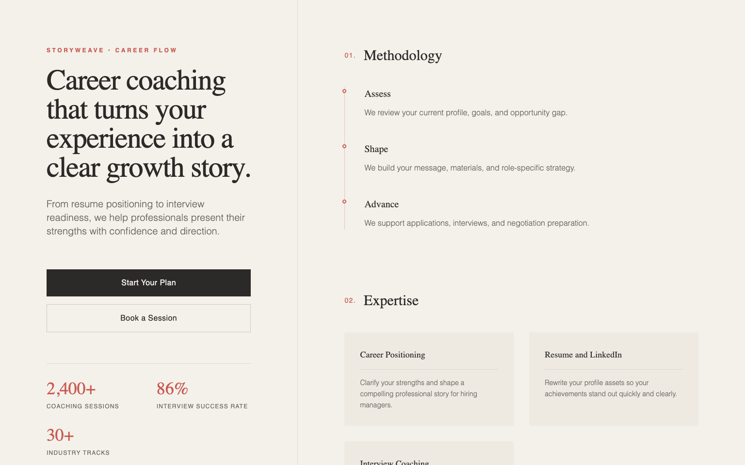 Career portfolio narrative redesigned from generic timeline into clearer role-ownership and impact storytelling.